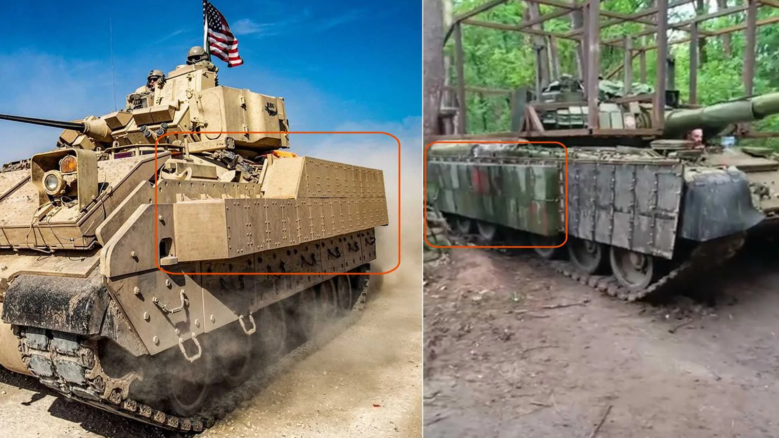 Танк получил новые бортовые экраны с блоками BRAT, которые могли снять с попавшей в распоряжение военных Bradley. Вероятно, танк доработали уже в полевых условиях