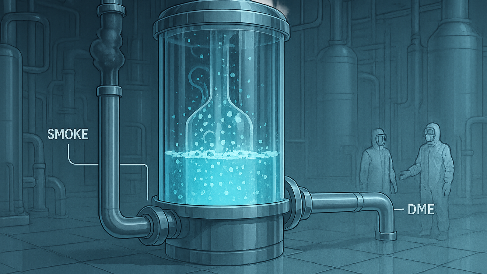 Традиционное получение вещества требует сначала синтеза метанола, а затем диметилового эфира, что сопровождается высокими энергозатратами и использованием сложного оборудования. Новый метод позволяет синтезировать конечный продукт непосредственно из выбросов, минуя промежуточные этапы.