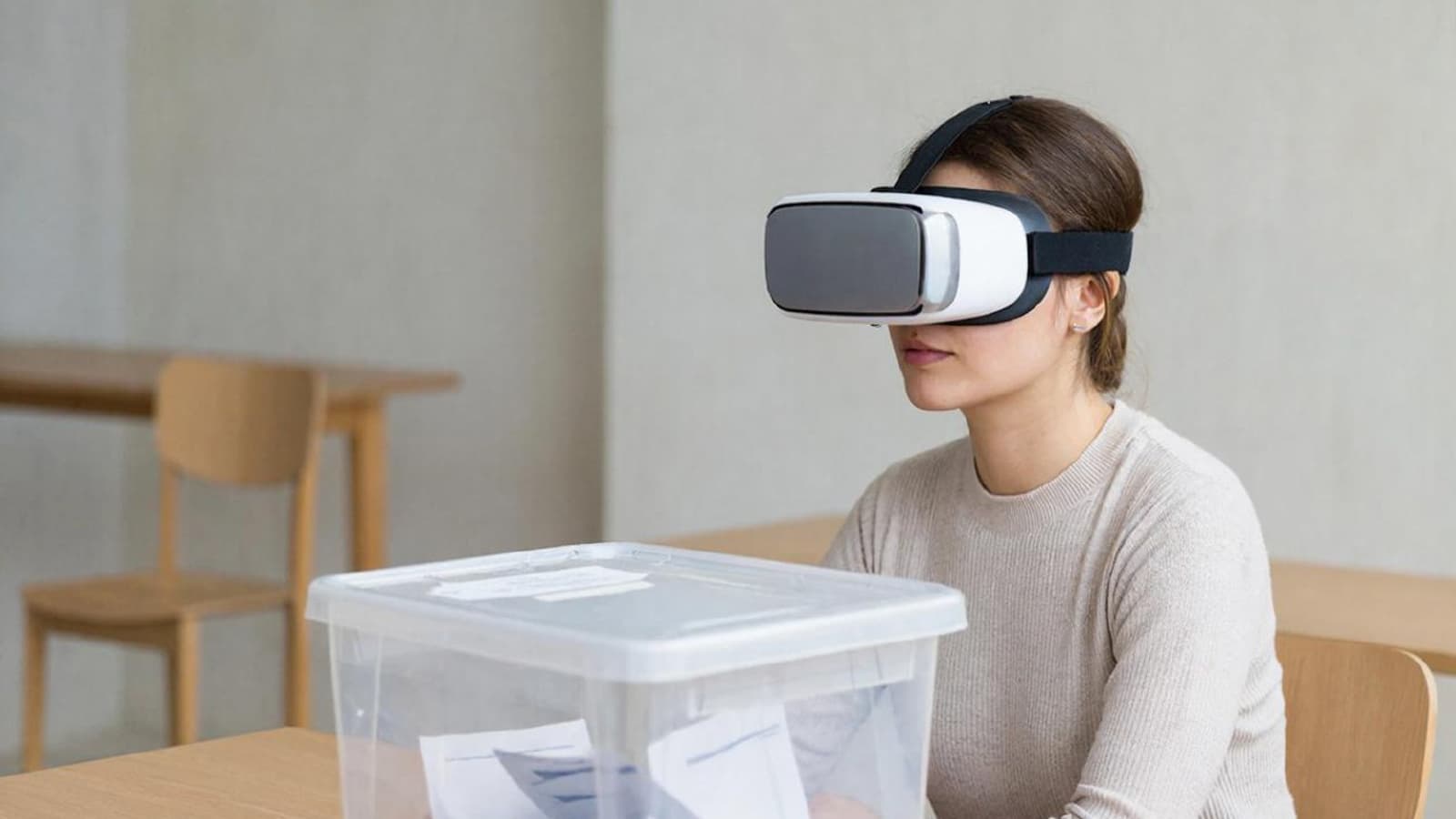 VR-тренажёр поможет подготовить общественных наблюдателей к выборам. Надев очки виртуальной реальности, пользователь видит: