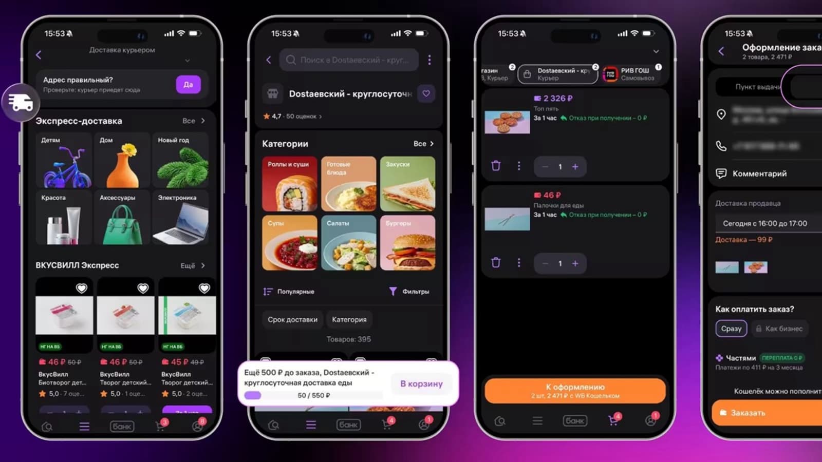 Маркетплейс Wildberries представил новую функцию — экспресс-доставку, которая позволяет получать продукты питания, готовую еду, лекарства, цветы и товары повседневного спроса в течение одного-четырёх часов. На данный момент сервис доступен только в мобильном приложении.
