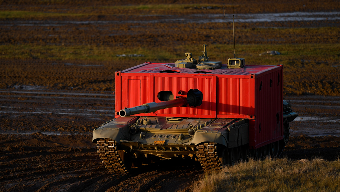Российские Кулибины придумали революционный способ защиты боевых танков. Теперь их полностью укрывают морскими контейнерами. По сути, это следующее поколение пассивной защиты после приевшихся «мангалов» из металлической сетки и сложных построек из расплетённых тросов и металлического профиля.