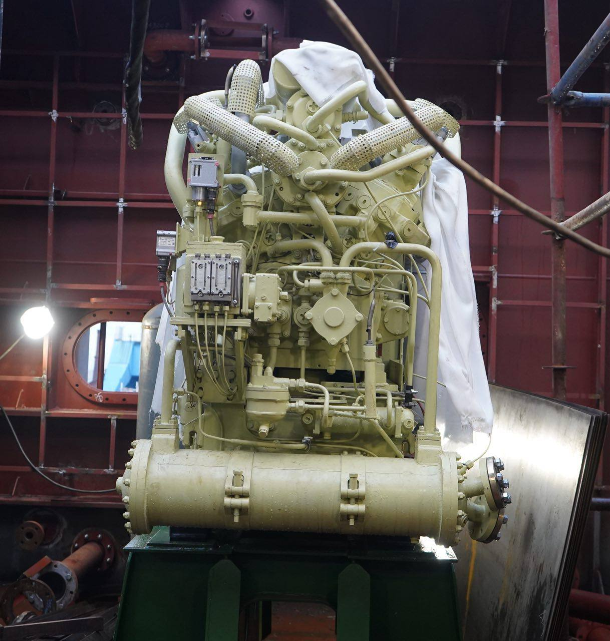На борту ледокола предусмотрено три таких компрессора, каждый из которых весит почти 3,8 тонны и обладает производительностью 144 нормальных кубометра воздуха в час. Заявленный срок службы оборудования составляет 40 лет, что соответствует продолжительности активной эксплуатации атомного ледокольного флота.