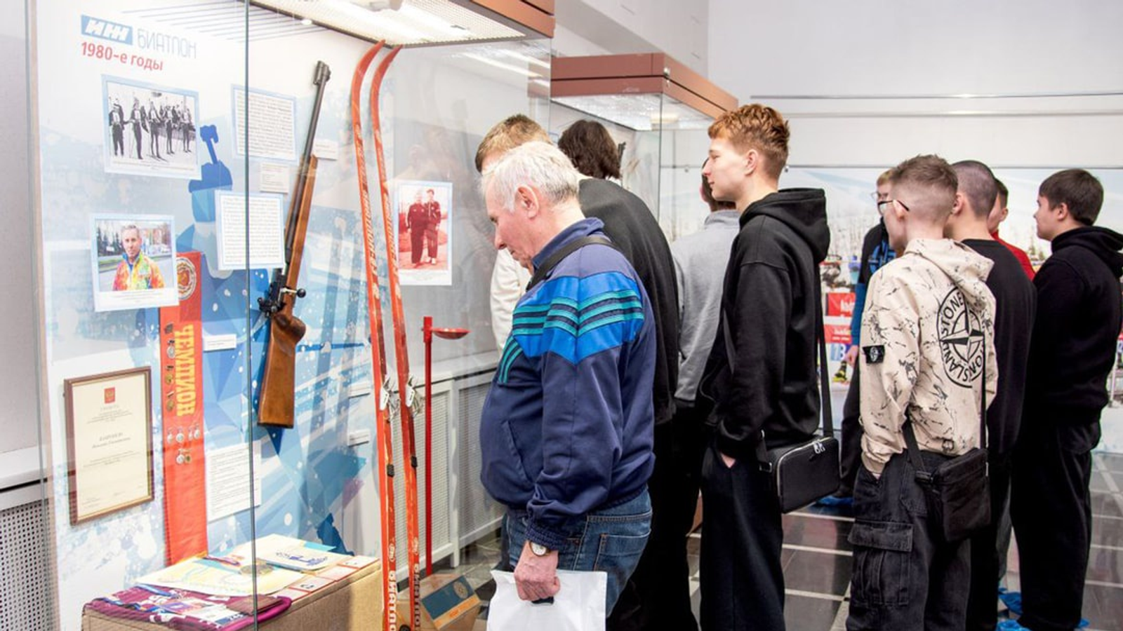 Особый интерес у посетителей вызвала редкая винтовка «Биатлон-50», ставшая первым в мире специализированным образцом оружия для биатлонных соревнований, разработанным на заводе «Ижмаш». Рядом с ней разместились легендарные модели «БИ-7,62» и «БИ-6,5» — те самые, с которыми четырёхкратный олимпийский чемпион Александр Тихонов добивался громких побед на международной арене.