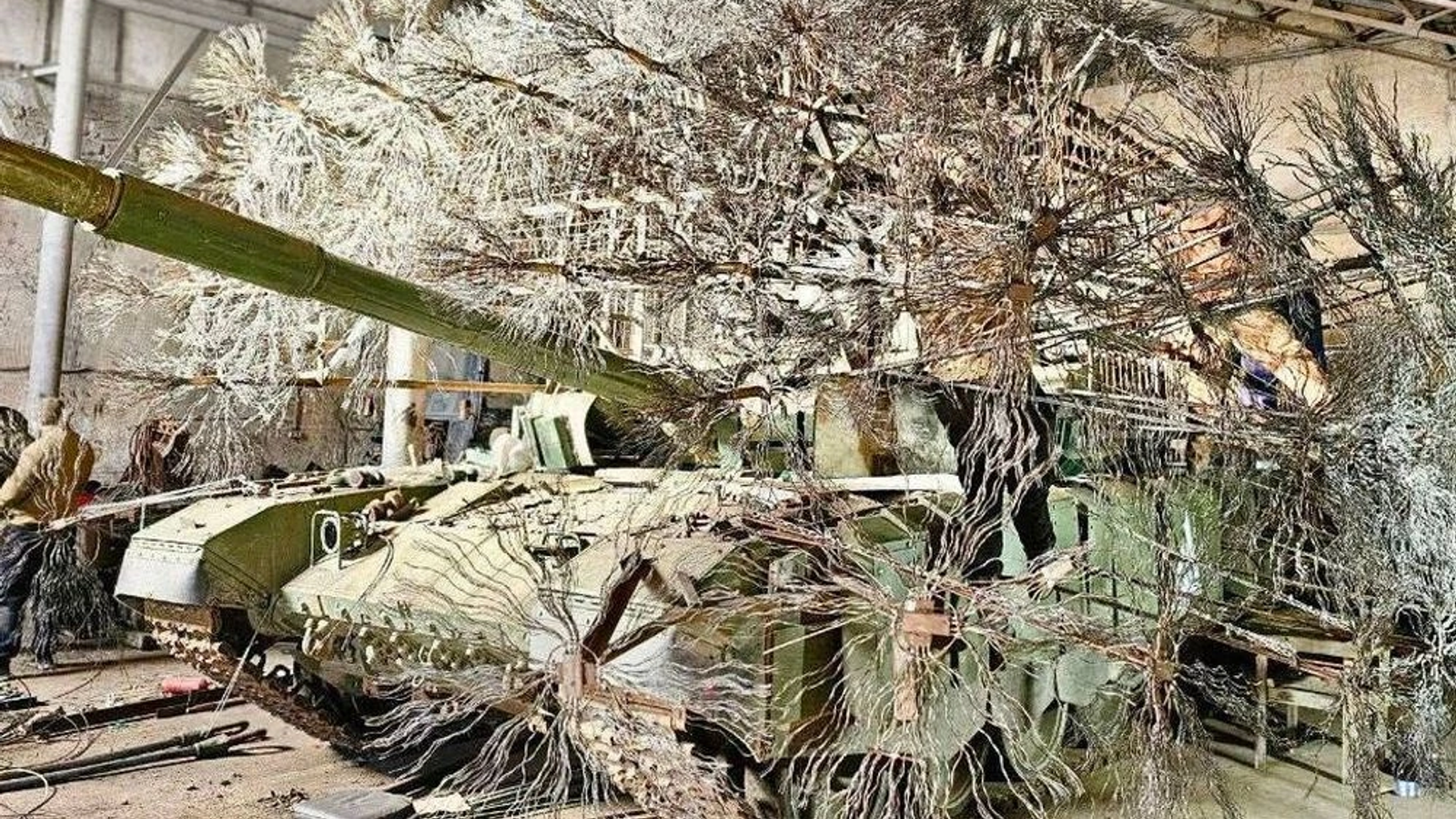 В результате получилась ажурная конструкция, не затрудняющая обзор и наведение пушки, но не подпускающая к танку FPV-дроны.