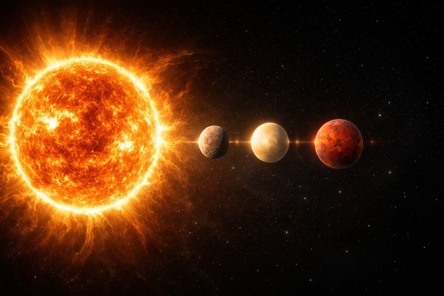 Венера и Марс уже подошли к Солнцу в прошедшее Рождество, образовав редкое соединение, которое, по оценкам астрономов, не повторится в ближайшие два столетия. Сейчас Венера смещается налево от Солнца, а Марс — направо. Меркурий на последних космических снимках появляется как яркая «звезда» справа и движется к центру кадра, к солнечному диску. Венера и Марс пока скрыты за коронографом, который блокирует яркий солнечный свет для наблюдений.