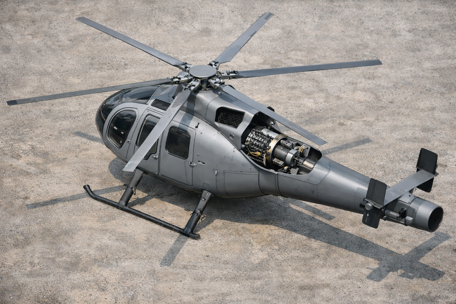 Ключевая особенность разработки — полное сохранение мощности основного двигателя и несущего винта. Компрессор и сопла работают от отдельного электродвигателя, а не от редуктора, как в традиционных схемах NOTAR. Это снижает нагрузку на силовую установку и повышает надёжность на взлёте, посадке и при висении.