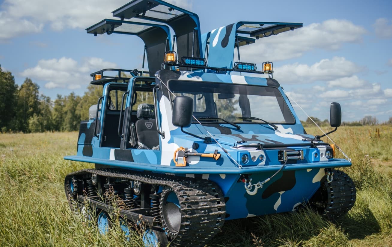 Он напомнил, что «Пластун-СН» массой всего 3,8 т благодаря резиновым гусеницам оказывает давление на грунт 0,17 кг/см². При этом в вездеход помещаются восемь человек, а сам он разгоняется до 40 км/ч.