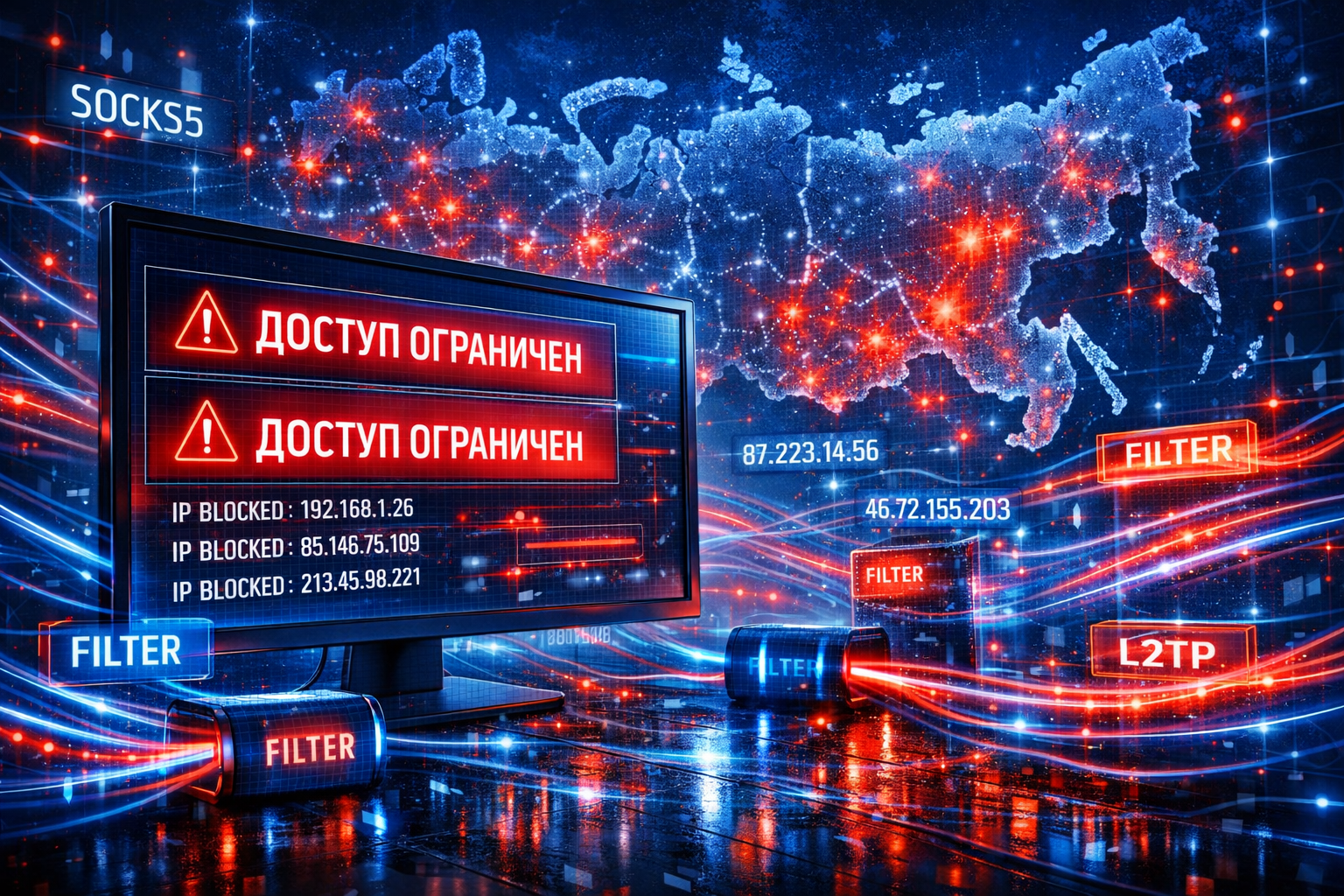 По российскому законодательству VPN обязаны блокировать доступ к запрещённым сайтам, иначе сами сервисы попадают под ограничения. С декабря 2025 года Роскомнадзор начал активнее блокировать дополнительные протоколы, включая SOCKS5, VLESS и L2TP. С сентября 2025 года действует запрет на рекламу VPN-программ, штрафы за нарушение которого могут достигать 500 тыс. рублей для юридических лиц.