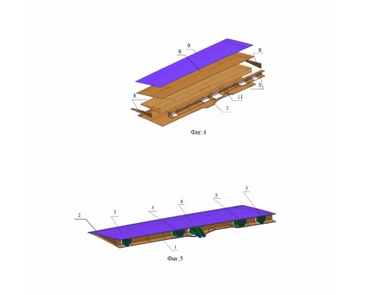 Из патента следует, что конструкция состоит из трёх секций. Первую секцию выполнили на основе цельной клеевой композитной структуры с лонжероном, обшивками, диафрагмами и силовыми стенками.