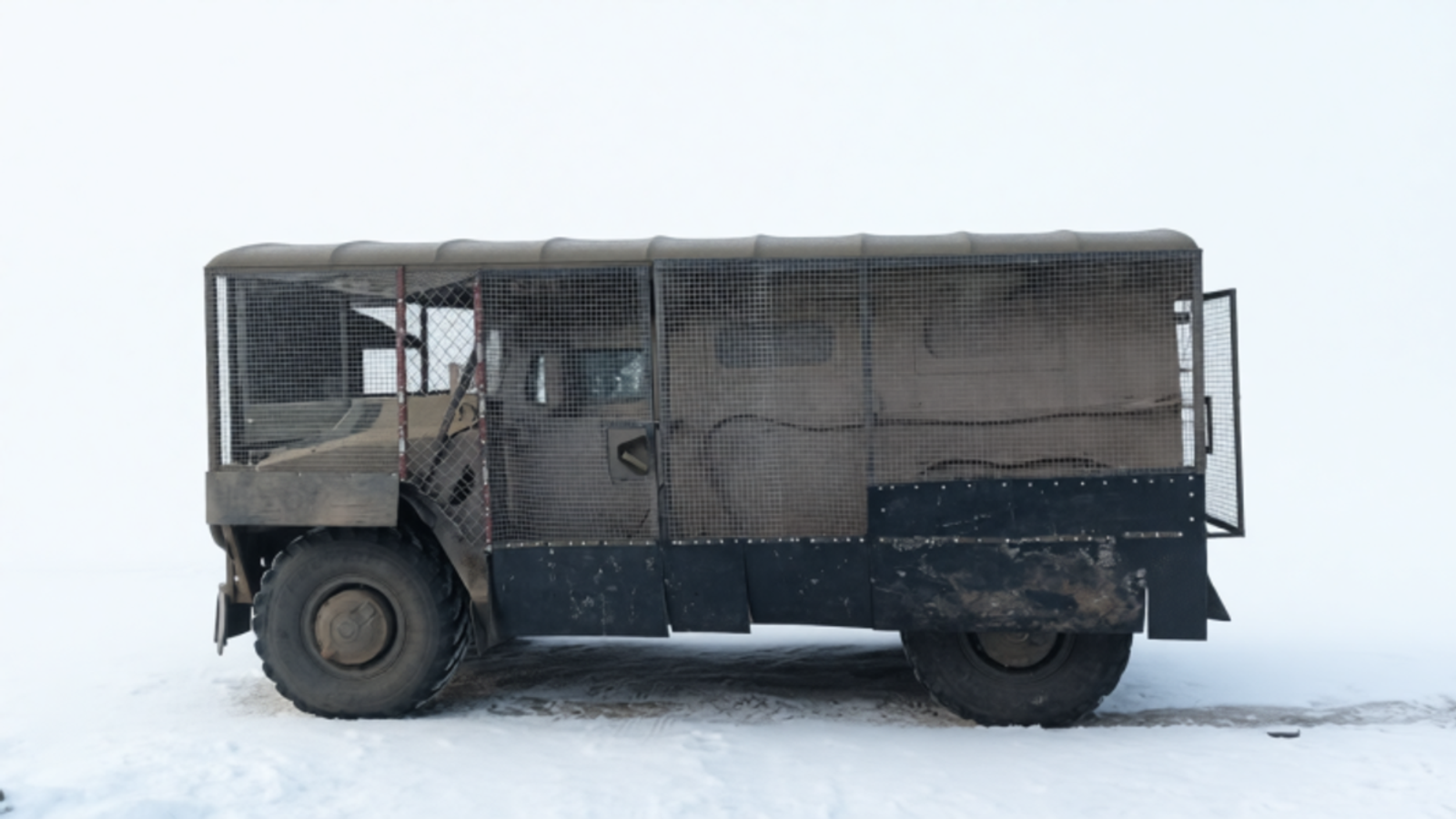 Задняя дверь интегрирована с решётчатым экраном, обеспечивая защиту экипажа при посадке и высадке. Нижняя часть бортов усилена дополнительными панелями для повышения стойкости к осколочному воздействию.