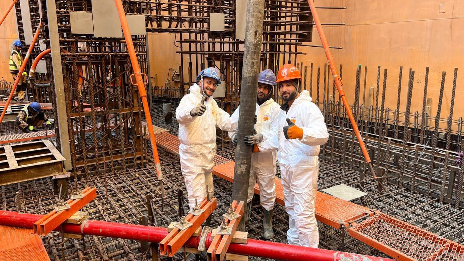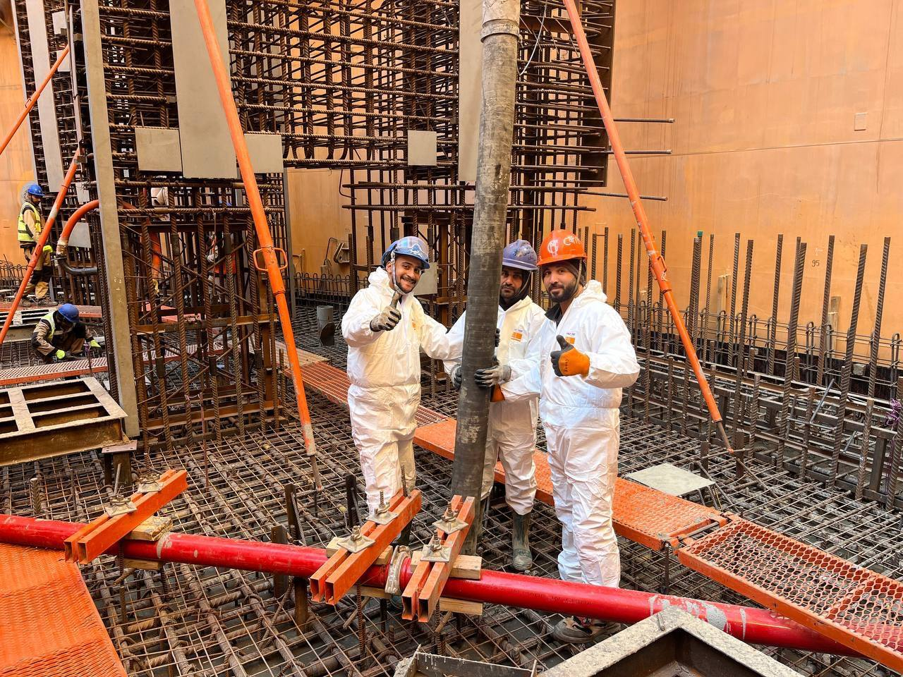 Строители завершили ключевой этап сооружения гермозоны второго энергоблока первой египетской АЭС «Эль-Дабаа» — выполнено бетонирование плиты перекрытия реакторного здания. Массивная железобетонная конструкция толщиной несколько метров закрывает нижний уровень гермозоны, обеспечивая гидроизоляцию подземных помещений и формируя надёжное основание для монтажа реакторного оборудования и возведения верхних ярусов здания.