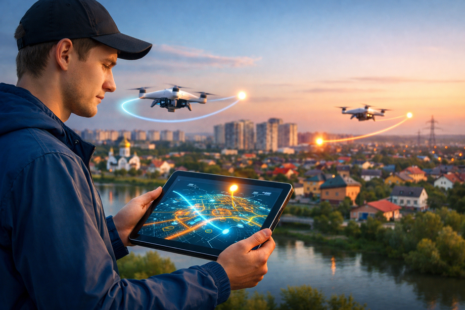 Планирование маршрута происходит до вылета — оператор строит трассу на компьютере или планшете, затем загружает готовый курс в память беспилотника. Команда протестировала разработку на участке в Краснодаре: сначала прокладывали маршрут в программе, затем выезжали на местность и сверяли цифровые карты с реальными объектами. Испытания показали точность планирования на уровне 95%.