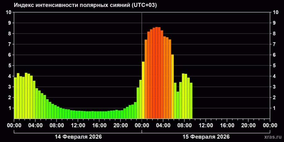 Нынешний период геомагнитной нестабильности может продолжаться до двух суток с неравномерными всплесками, при этом вероятность усиления до уровня G2 оценивается как низкая. На фоне возмущений заметно усилилось полярное сияние: индекс яркости достигал 8,6 из 10. Лучшие условия для наблюдений были в северо-западных регионах России с 01:0 до 5:00