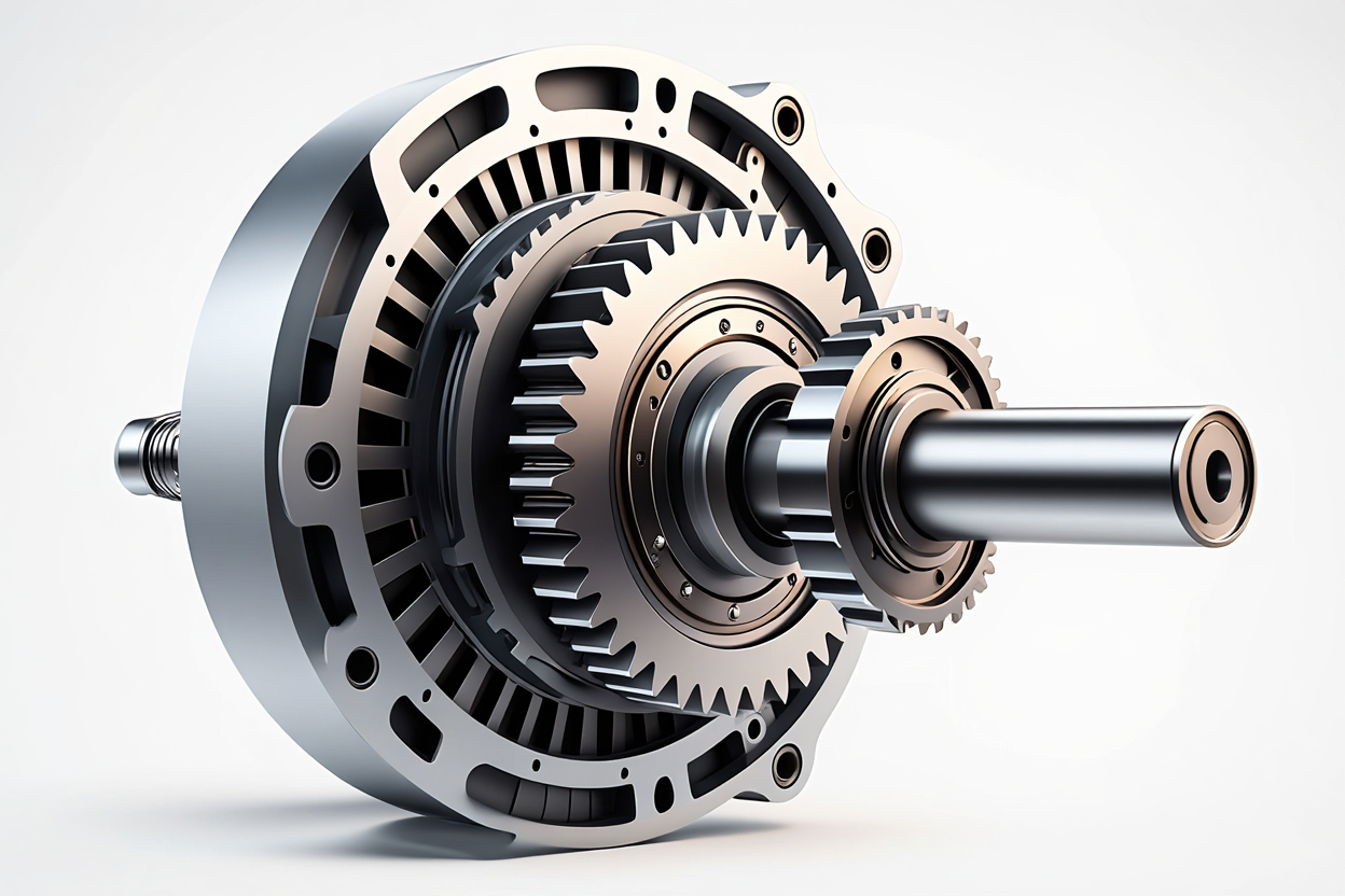 В классической схеме ротор объединён с планетарной передачей (солнечная, коронная шестерни и три сателлита), что даёт высокое передаточное число при компактных размерах.