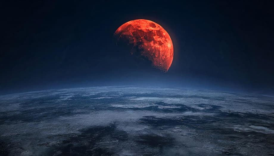 Он отметил, что необычный оттенок Луна получит из‑за солнечного света, проходящего через земную атмосферу: она поглощает голубую часть спектра, но пропускает красную.