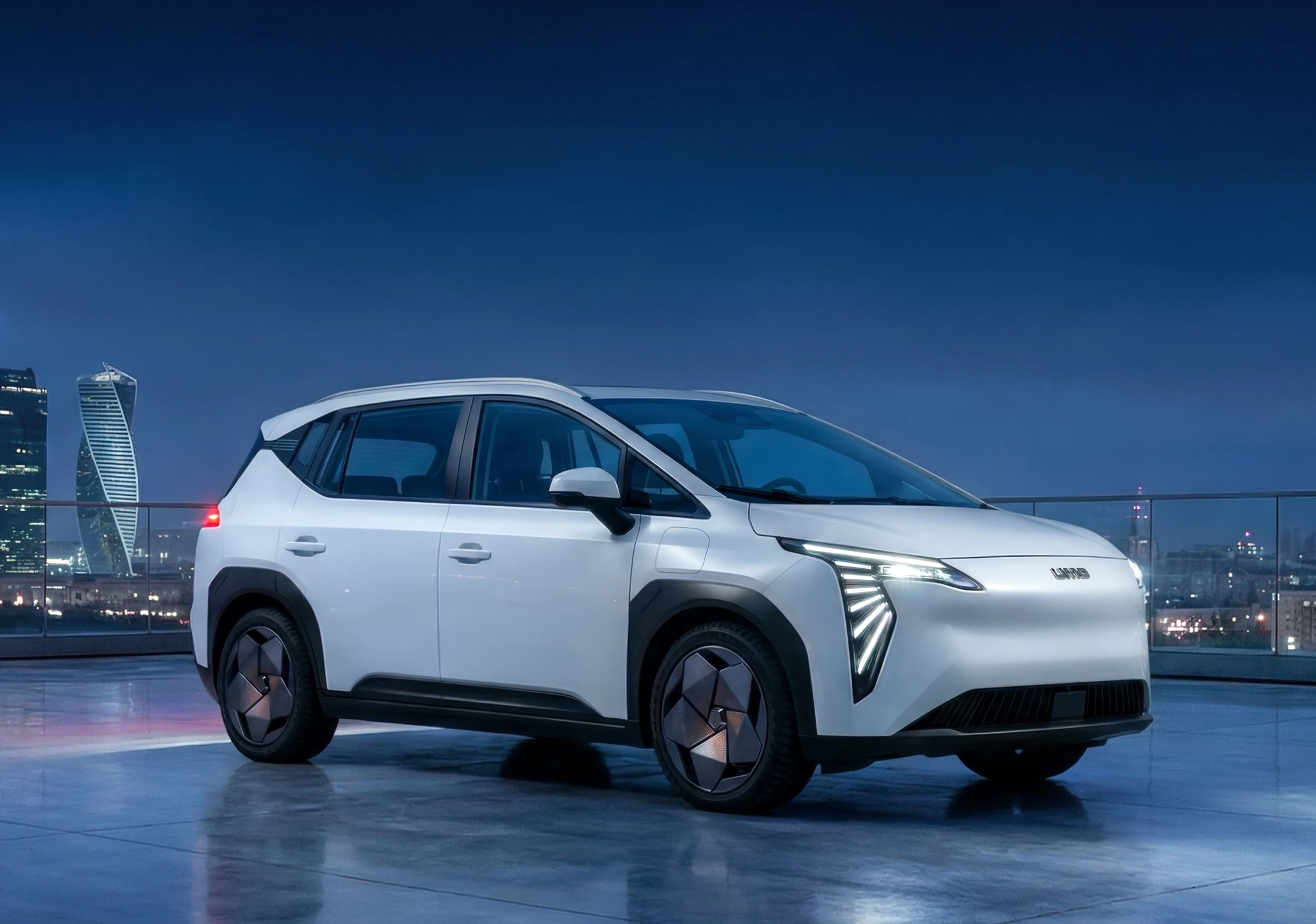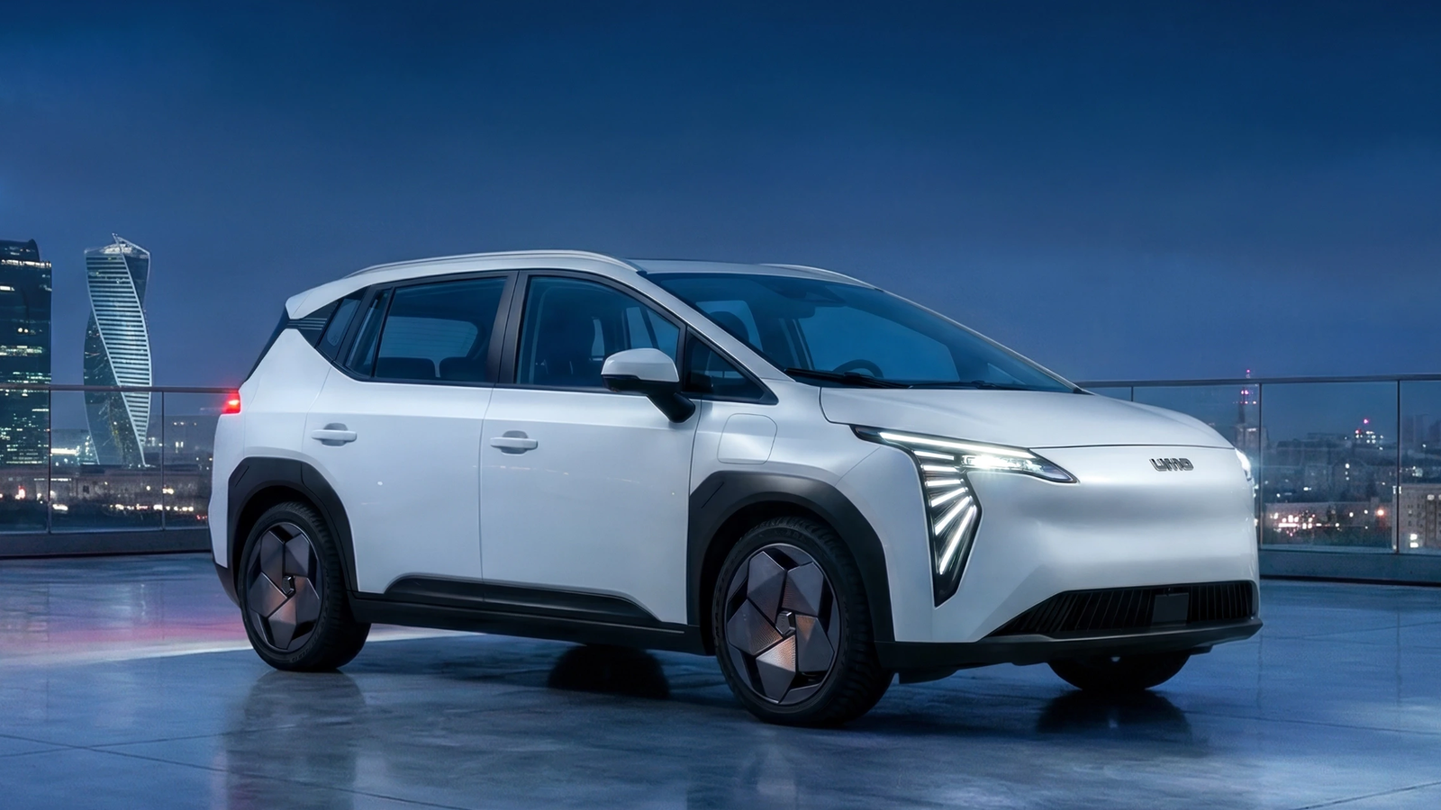 Производство UMO 5 запущено на «Москвиче» в феврале 2026 года, первая партия уже передана таксопаркам. Официальные продажи стартуют в апреле по цене от 2,5 млн рублей с учётом госсубсидии в 925 тысяч рублей. Мощность — 204 л. с., запас хода — 300–430 км в зависимости от сезона, батарея 63 кВт·ч заряжается с 20 до 80% за 30 минут. До конца года планируется выпустить около 3 000 единиц.
