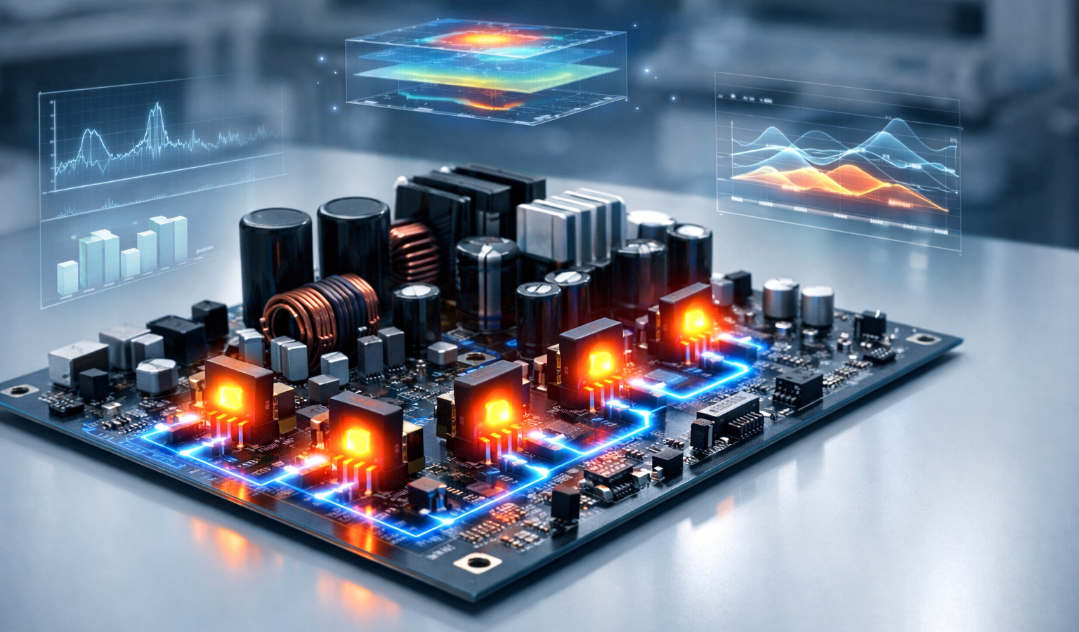 Перегрев транзисторов — одна из ключевых проблем силовой электроники. При резких перепадах температуры во время включения и выключения устройства параметры компонентов меняются, что приводит к отказу техники. До сих пор инженеры выбирали между двумя методами: точным 3D-моделированием в пакетах ANSYS, Flotherm или Comsol — долгим и ресурсоёмким — либо быстрыми, но упрощёнными расчётами в SPICE-симуляторах, которые не всегда учитывают реальную конструкцию платы.