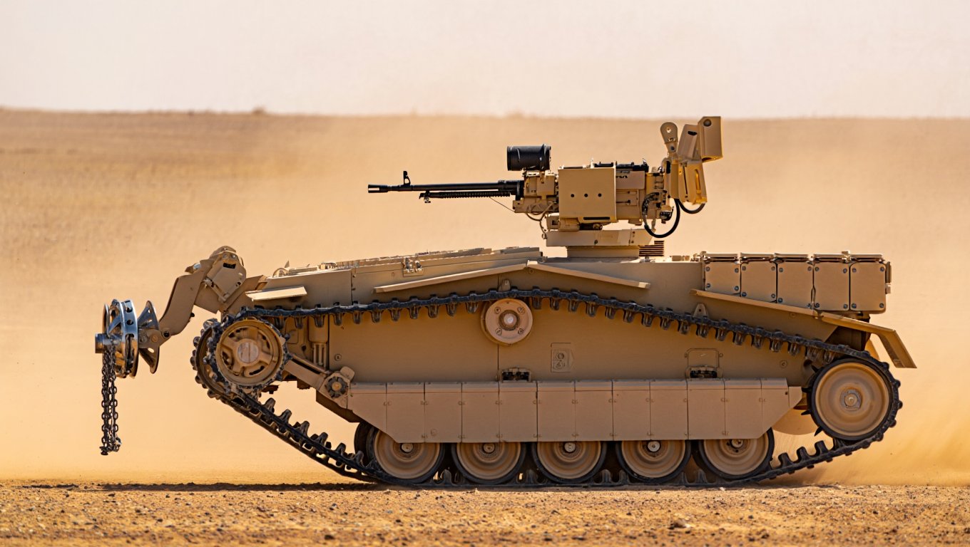 Изначально комплексы для разминирования были безоружными. И в случае, если они попадали под огонь, то не имели физической возможности отстреливаться. С пулемётом они смогут защитить себя.