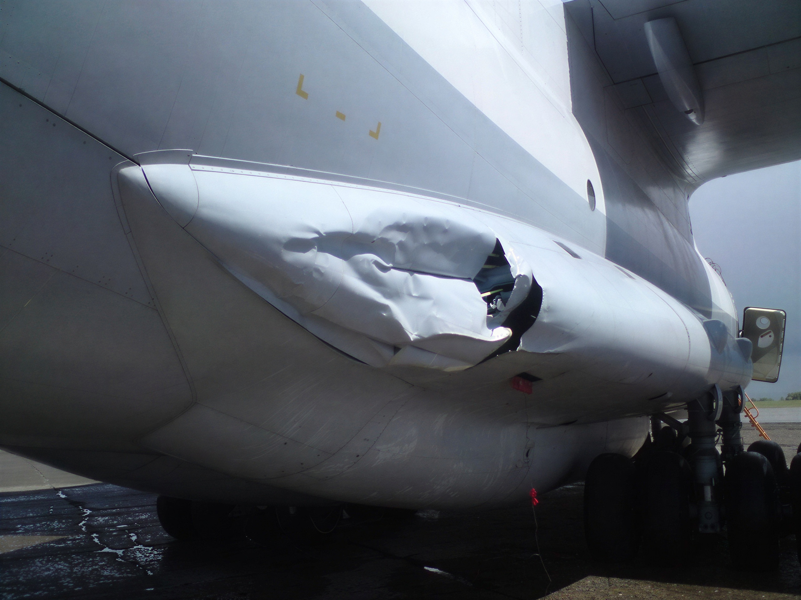 Где, в каком году и при каких обстоятельствах случилась «авария», он не уточнил. «Медведь» въехал в Ил-78 килем, оставив глубокое рваное отверстие в обтекателе механизма закрылка.