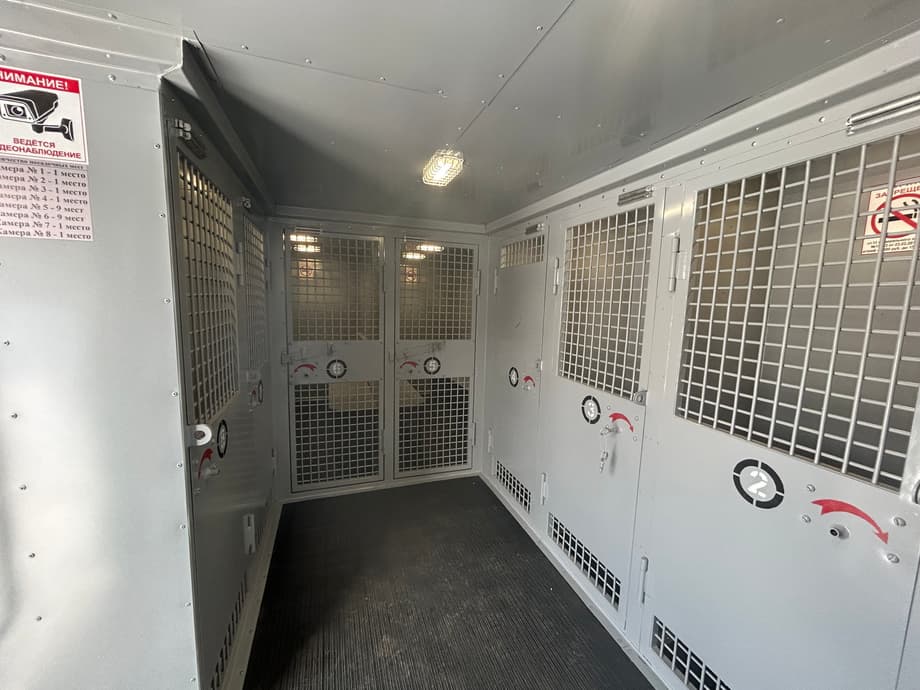 Машина рассчитана на 24 конвоируемых и 6 сотрудников, внутри — одиночные и общие камеры