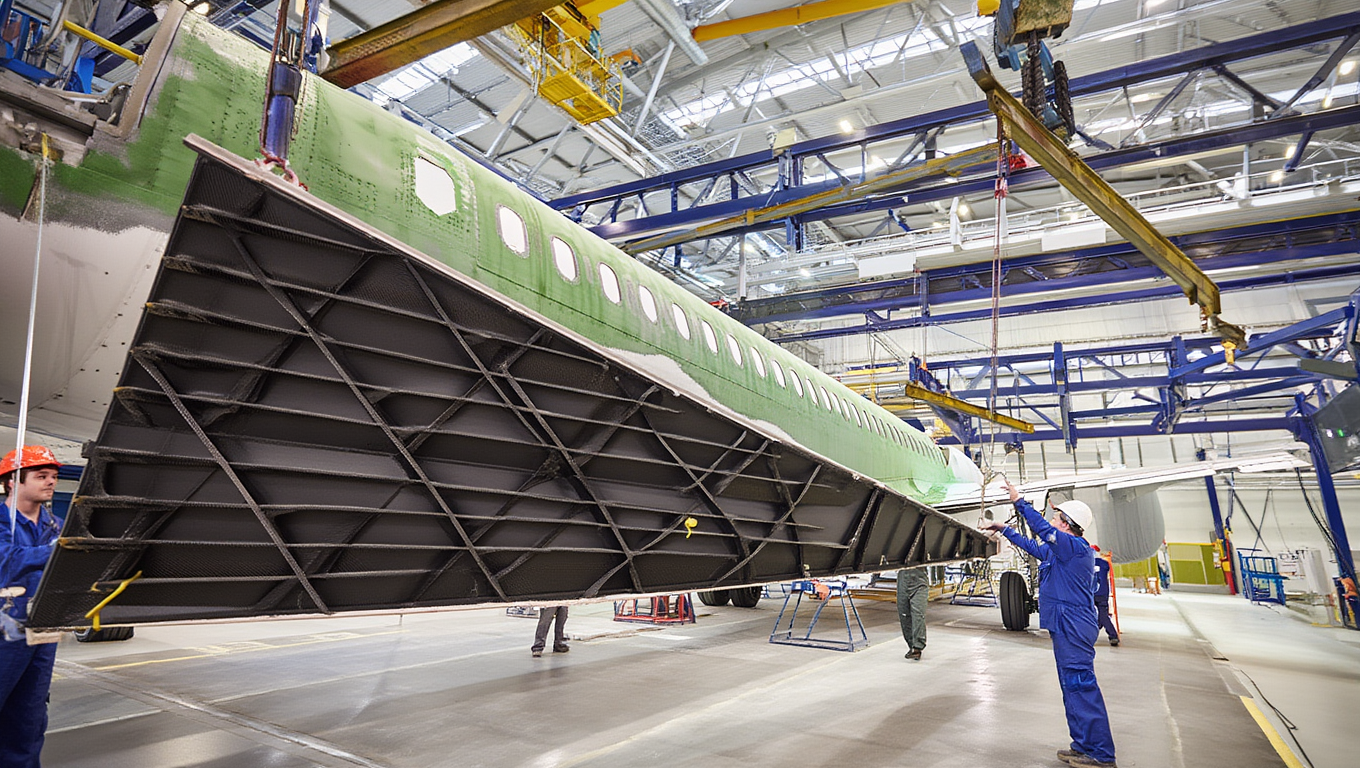 Такой подход делает крыло одновременно легче и прочнее: верхняя и нижняя панели, лонжероны и нервюры собраны в каркасы с продольными, диагональными и поперечными ребрами, рассчитанными на изгибающие и сдвиговые нагрузки.