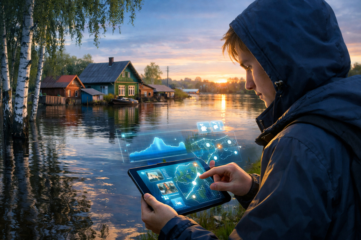 Telegram-бот отвечает в режиме 24/7 на вопросы об уровнях воды, пунктах эвакуации, выплатах и правилах поведения. По геолокации пользователя строит маршрут до ближайшего пункта временного размещения. Веб-чат-бот интегрирован с геопорталом Тюменской области — показывает актуальные данные с гидропостов, перекрытые дороги и персонализированные рекомендации. Мобильное приложение «Паводок72» работает в офлайн-режиме с голосовым интерфейсом и интерактивной картой безопасных маршрутов эвакуации.