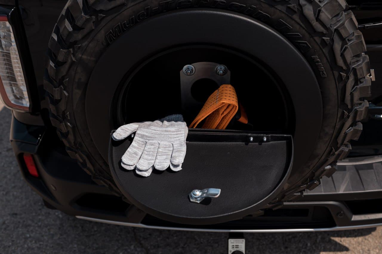 Появились и полезные мелочи для поездок. На крыше теперь грузовая площадка, в багажнике и запасном колесе — удобные органайзеры. В салоне установили подлокотник с ящиком для мелочёвки, а на пятую дверь крепится бокс с топором и лопатой. Тем, кто ездит с собакой, предлагают сетку-ограждение в багажник: она быстро складывается и превращается в полку.