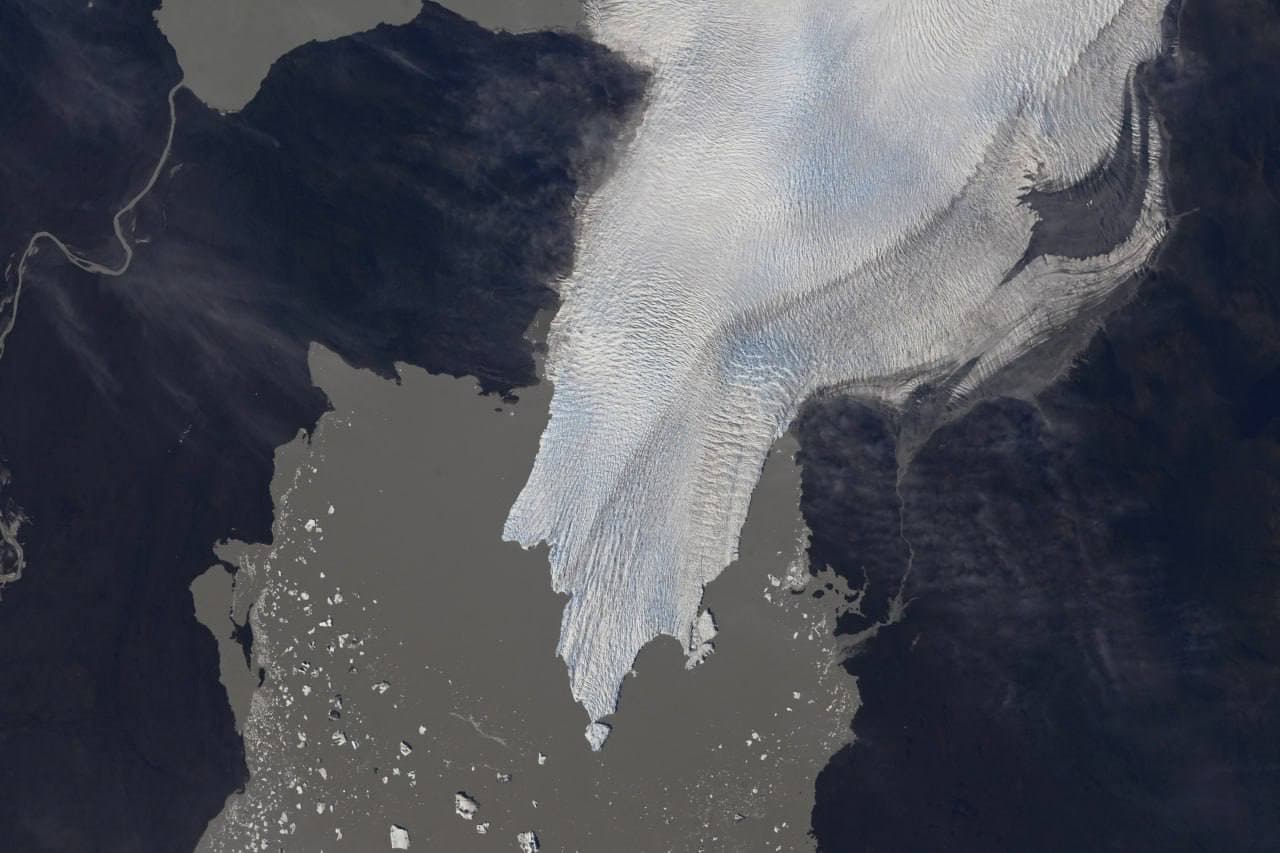 Гренландия. Заснеженные просторы самого большого острова Земли открываются с орбиты как бесконечное ледяное поле с причудливыми узорами трещин и фьордов.