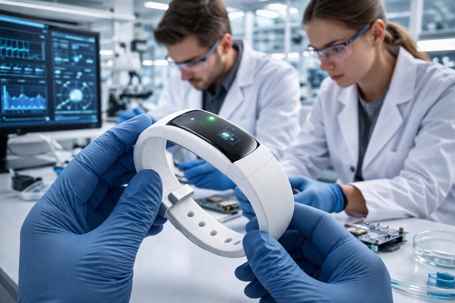 При размещении сенсора на запястье пот контактирует с чувствительным слоем. Это приводит к накоплению заряда и увеличению электропроводности. Именно по этим изменениям устройство отслеживает состояние человека.