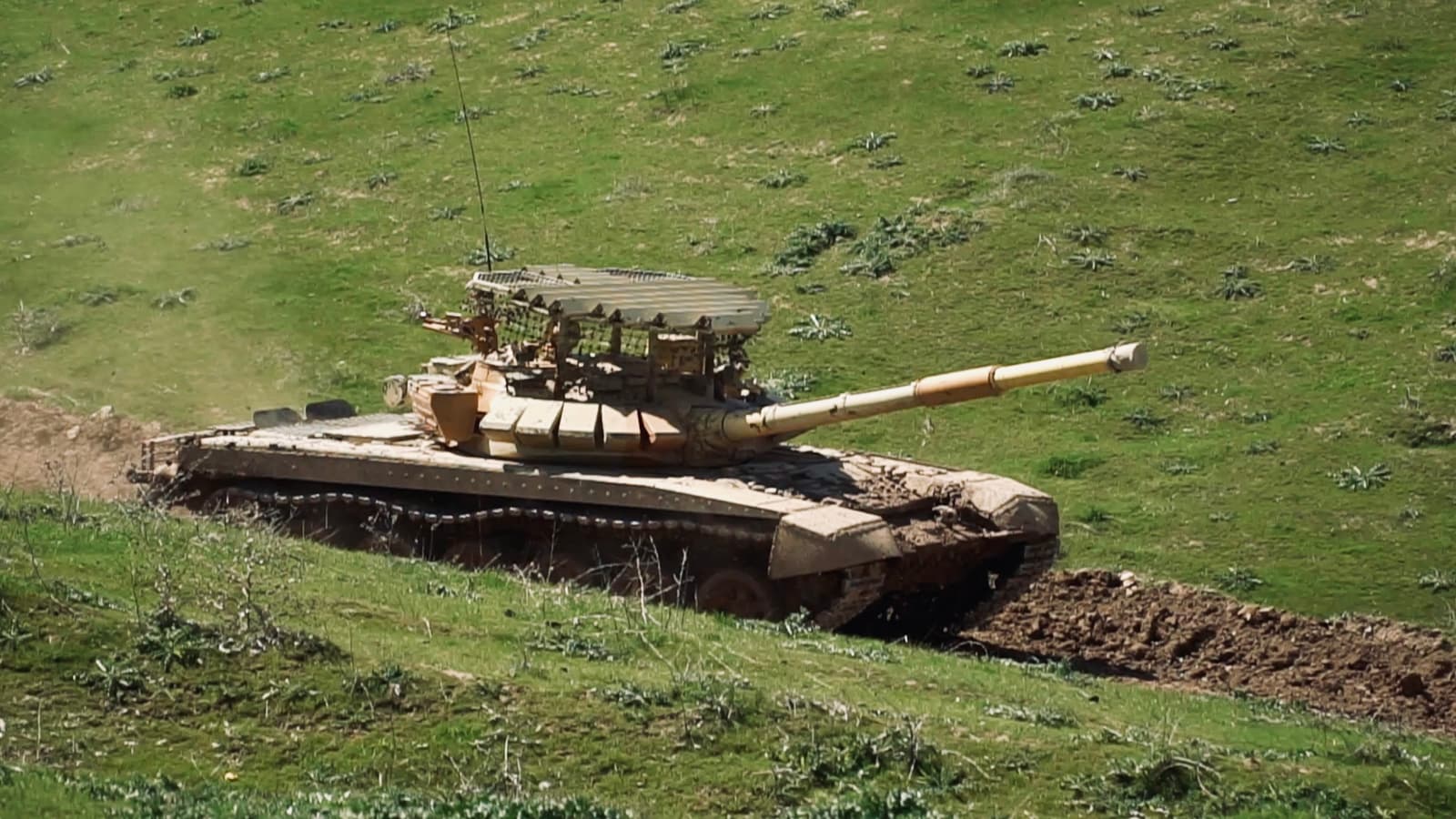 Механики-водители усовершенствовали навыки управления Т-72Б3М со штатными «мангалами» (сварная конструкция на крыше танка для защиты от дронов) в условиях горного рельефа. Они прошли дистанцию в 5000 м, преодолев минные заграждения и противотанковые рвы.
