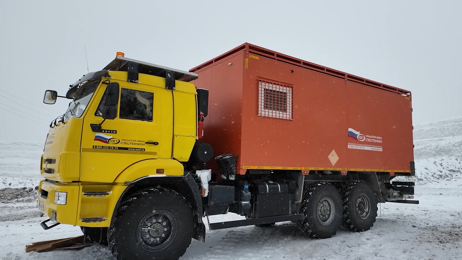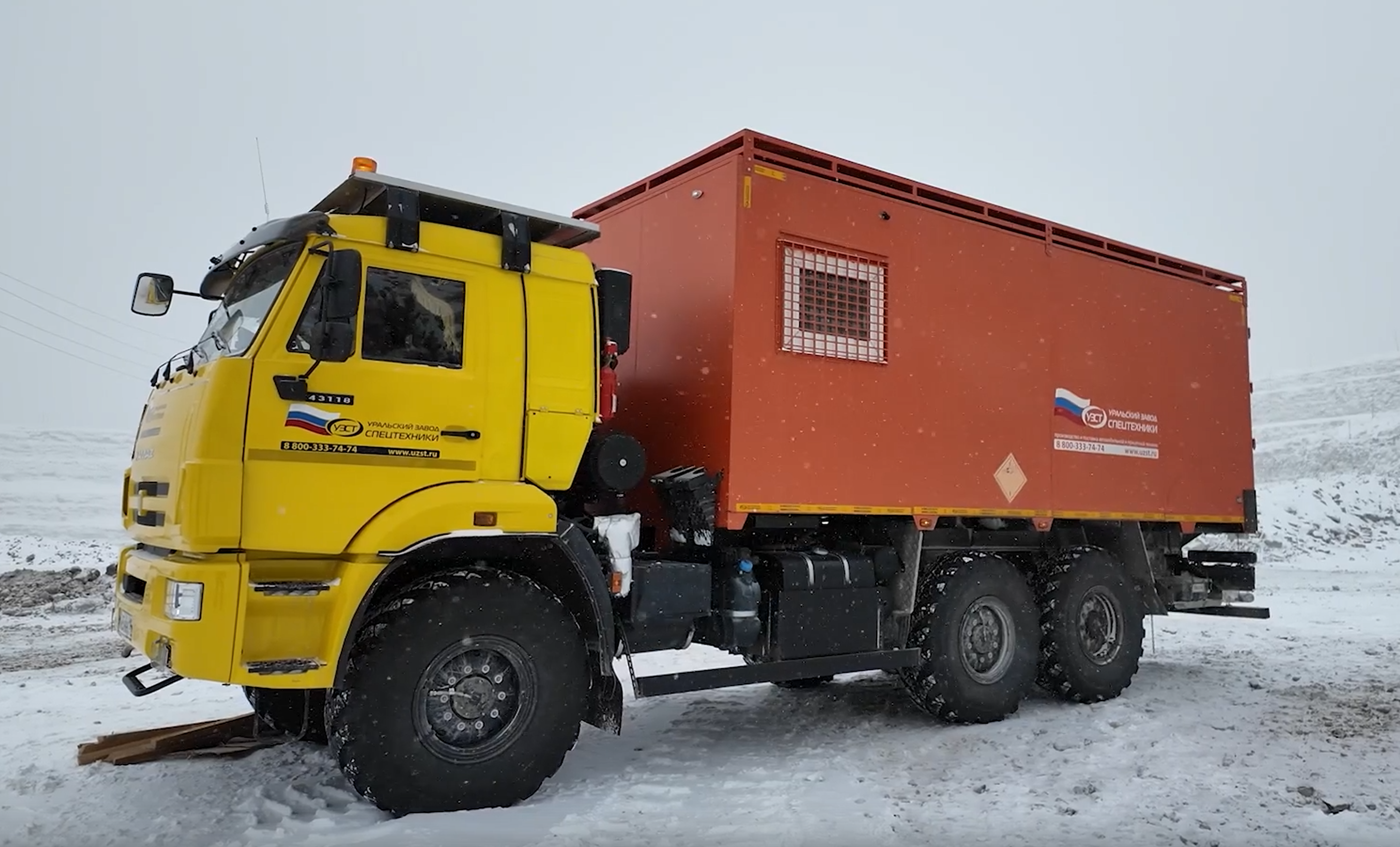На Удачнинском горно-обогатительном комбинате начал работу специальный КамАЗ-43118-3017-50, предназначенный для безопасной перевозки взрывчатых веществ. Грузовик оснащён цельнометаллическим кузовом, устойчивым к огню, а его внутренняя отделка выполнена с использованием антистатических покрытий и искробезопасной обшивки.