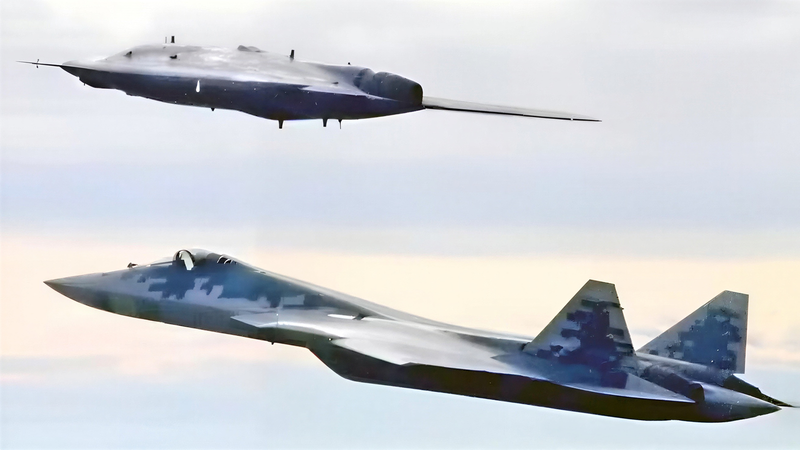 Су-57 в связке с БПЛА С-70 «Охотник»
