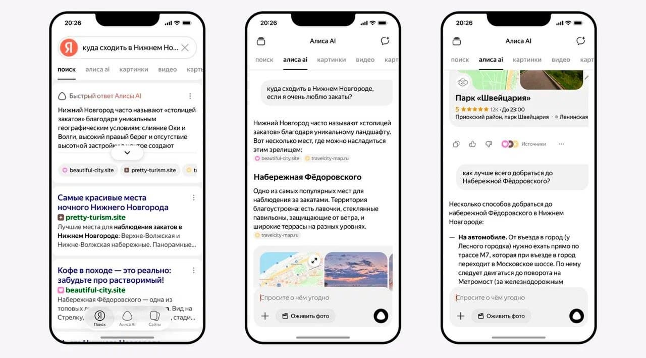 При этом Алиса встроена прямо в Поиск: из диалога можно мгновенно переключиться на вкладки с картинками, товарами или видео — и так же быстро вернуться обратно.