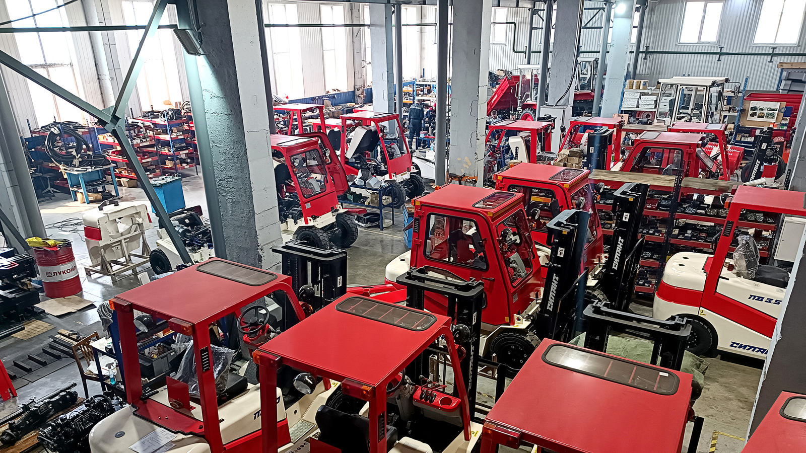 На предприятии завершили строительство сварочно‑сборочного корпуса и приступили к подготовке производственной линии. Расчётная мощность — до 4 тысяч машин в год. По оценке завода, этого хватит, чтобы занять не менее половины российского рынка в сегменте тяжёлой складской техники.
