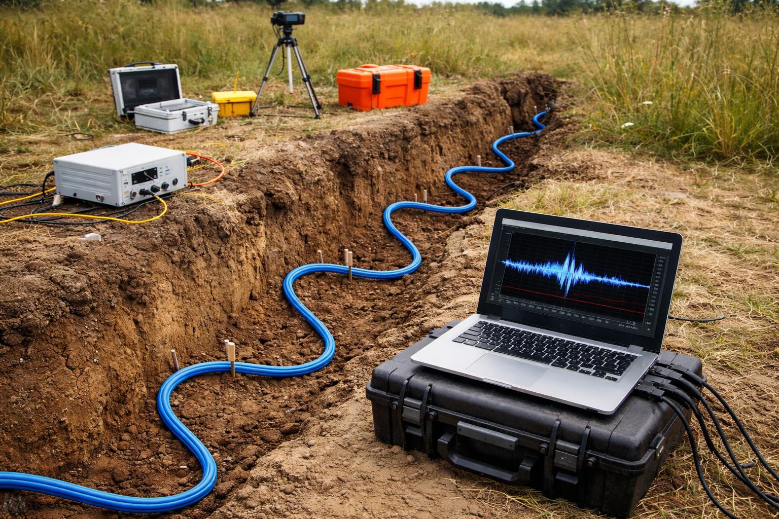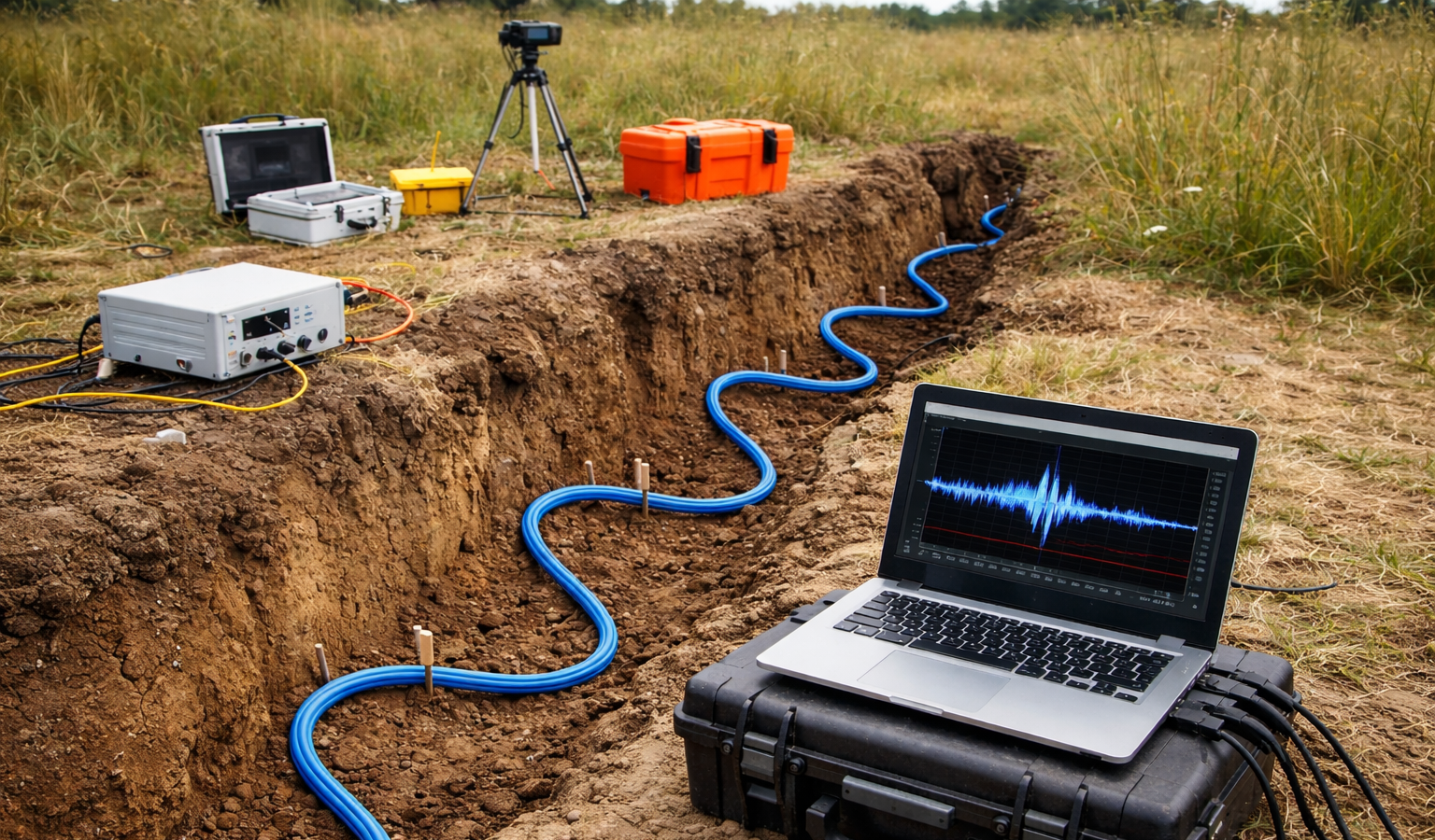В основе многих сейсморазведочных методов лежит регистрация колебаний датчиками на поверхности Земли. В последние годы активно развиваются оптоволоконные системы, которые фиксируют изменения длины кабеля — то есть его деформации.