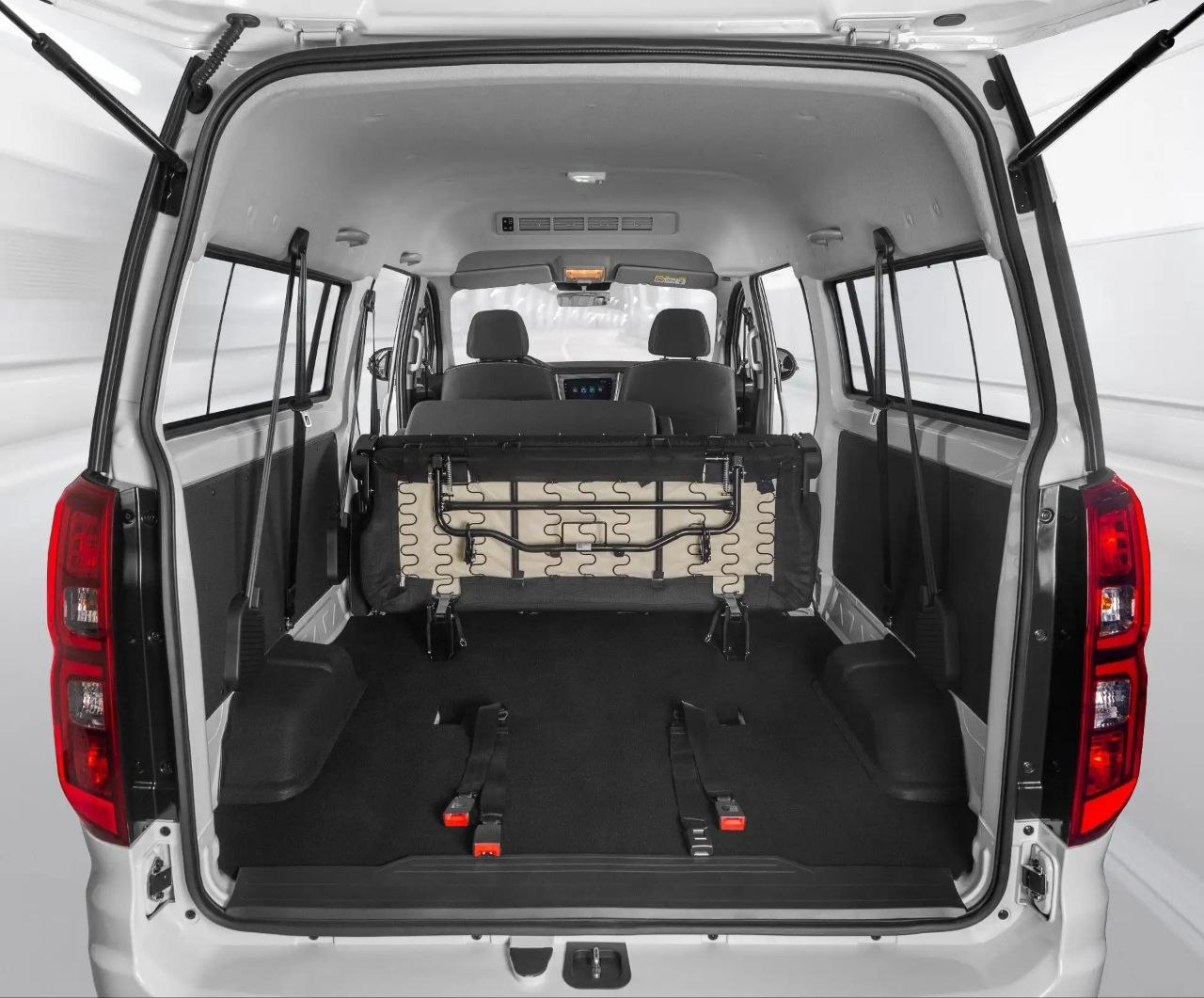 Пассажирская версия дополнительно оснащена креплениями ISOFIX: одна точка на втором ряду и две — на третьем. Также предусмотрена точка крепления стандарта LATCH на третьем ряду и система блокировки задних дверей от открытия изнутри.