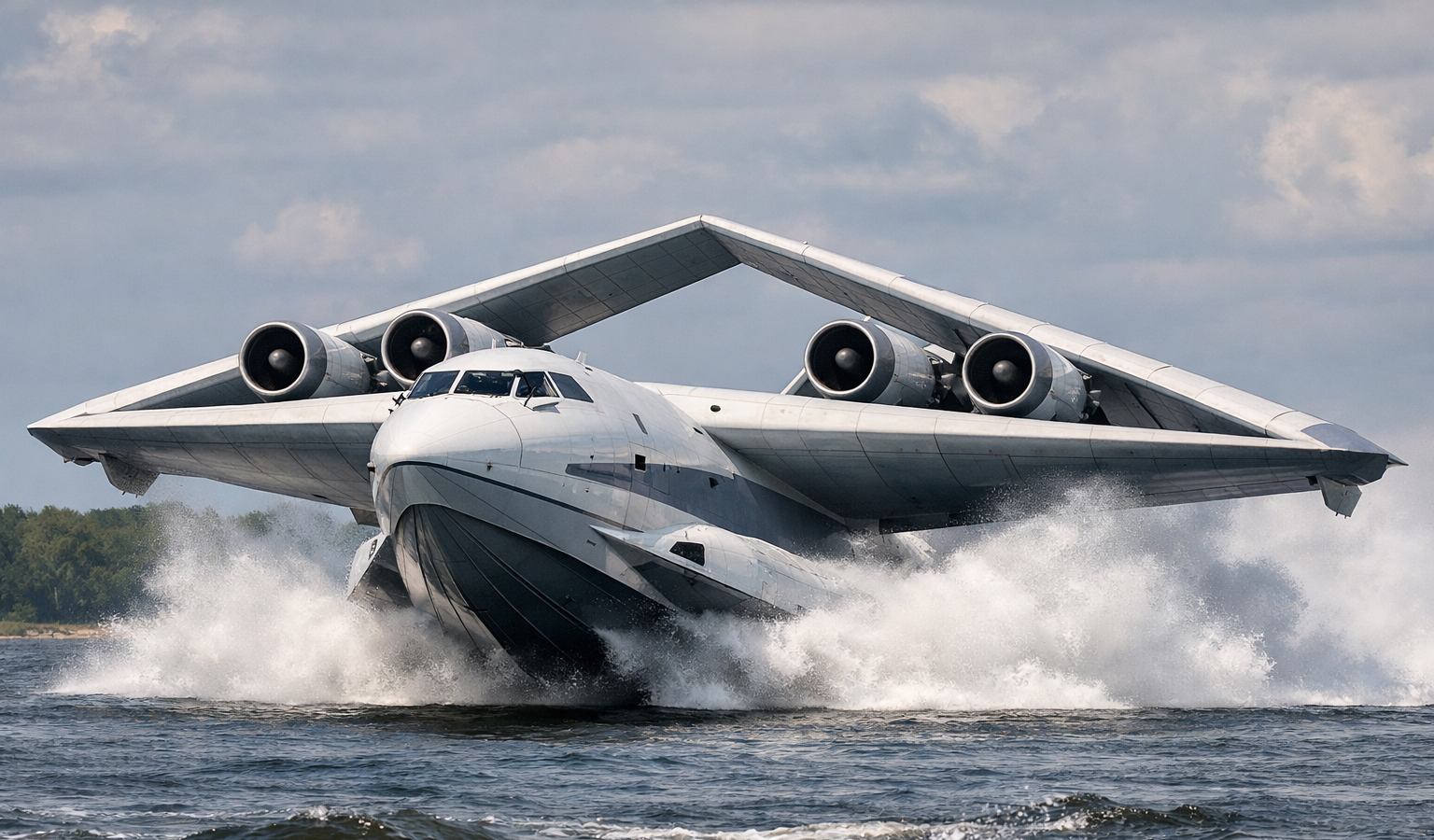 Нижняя часть корпуса спроектирована с высокой килеватостью (V-образной формой) и специальным уступом (реданом) — это облегчает разгон и отрыв от воды. На малых высотах дополнительно используется экранный эффект, снижающий расход топлива.