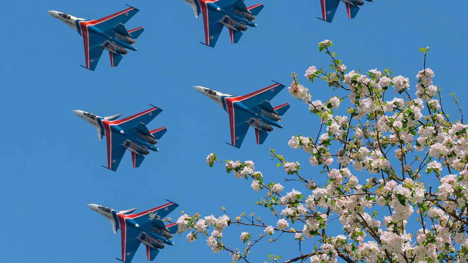 На репетиции воздушной части церемонии заметили Су-30СМ, МиГ-29 и Су-25